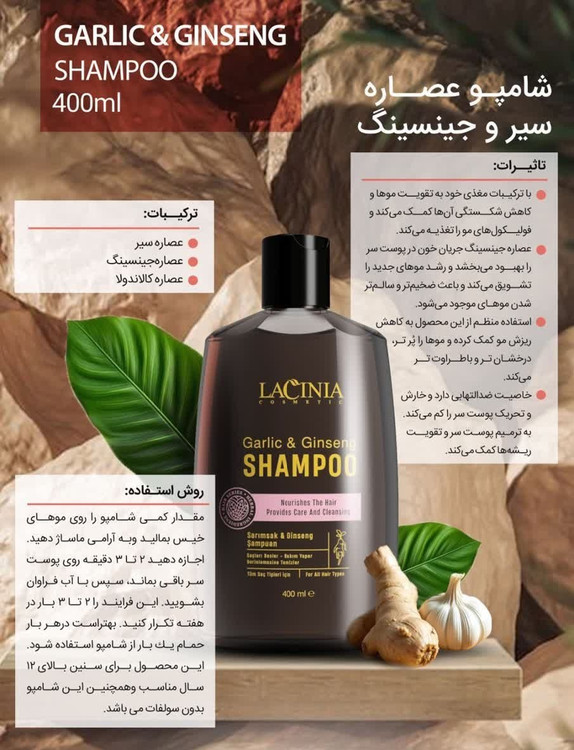 شامپو عصاره سیر و جینسینگ ۴۰۰ میل لاسینیا